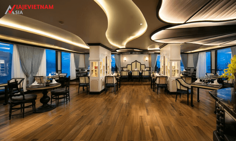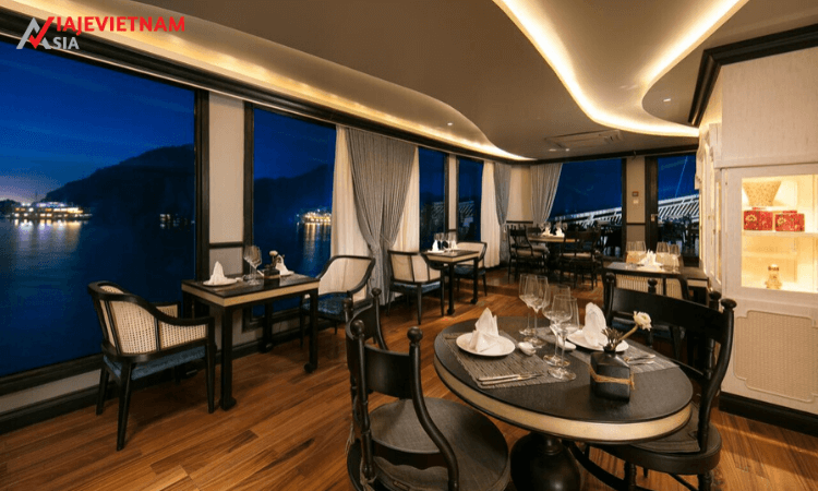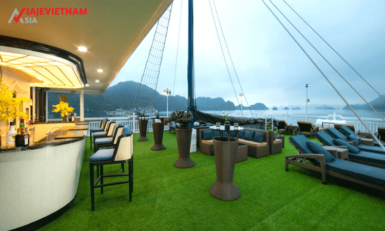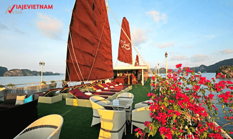 20:30 – 23:00 Después de terminar su cena, tiene muchas actividades para pasar el tiempo. Puede contemplar el cielo nocturno lleno de estrellas de la bahía en la cubierta superior y relajarse con música romántica. Por esta romántica escena que muchas recién parejas eligen crucero en Halong como el ideal destino de viajes novios. Otra opción es ver Top Gear Vietnam Special – una serie de televisión de BBC, divertirse con un espectáculo de magia mientras disfrutando de bebidas del bar o prueba suerte en la pesca de calamar. También puede disfrutar de su privado espacio al tomar algunas bebidas y tener su tiempo libre fuera del balcón privado de su cabina.