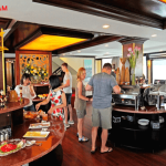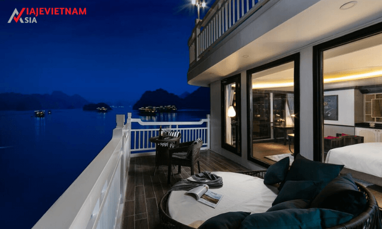 20:30-23:00 Después de terminar su cena, tiene muchas actividades para pasar el tiempo. Como la noche anterior, puede contemplar el cielo nocturno lleno de estrellas de la bahía en la cubierta superior y relajarse con música romántica. Otras opciones son ver Top Gear Vietnam Special – una serie de televisión de BBC, divertirse con un espectáculo de magia mientras disfrutando de bebidas del bar o prueba suerte en la pesca de calamar. También puede disfrutar de su privado espacio al tomar algunas bebidas y tener su tiempo libre fuera del balcón privado de su cabina.