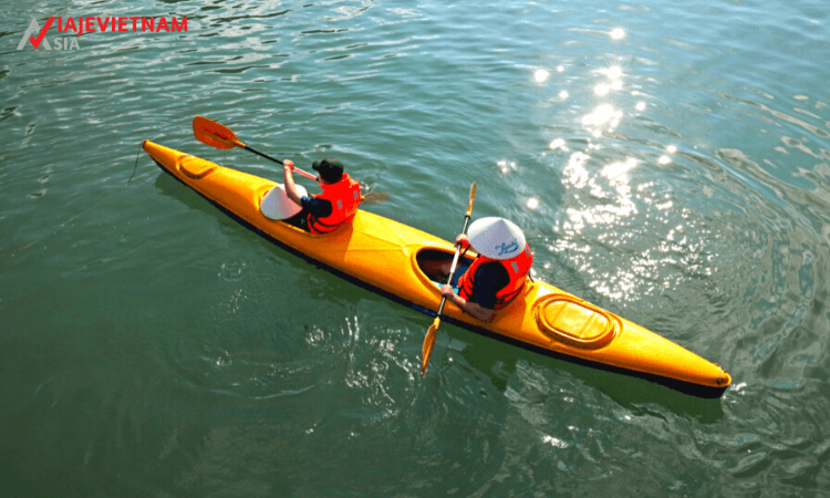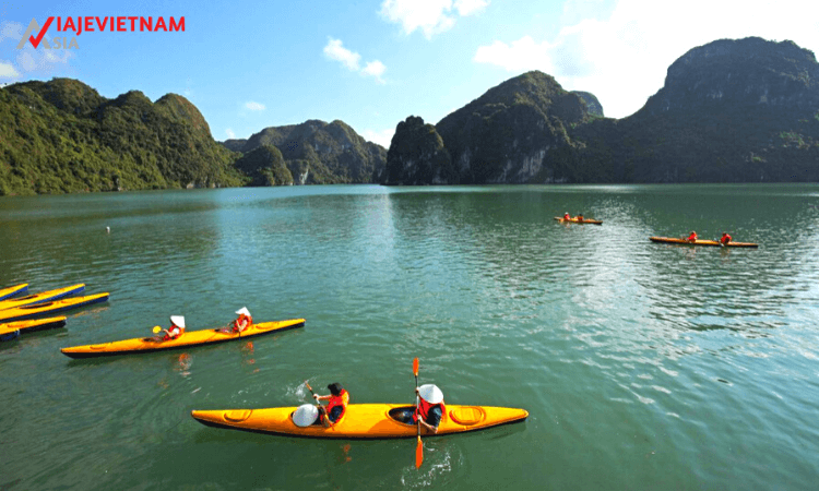 13:30 El barco lo lleva a Van Boi, una pequeña playa cercana para practicar kayak o natación. Entre las tres bahías en la zona de la bahía de Halong, Lan Ha se considera que tiene la mejor calidad de agua para el buceo.