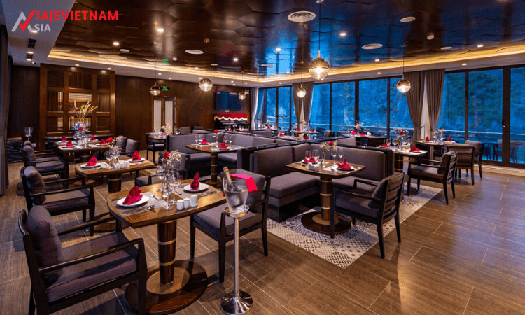 Una vez en el Stellar Of The Sea cruise, sobre las 12, la tripulación les dará la bienvenida con una bebida. Tanto el capitán como el resto del equipo les informarán sobre la ruta por Vietnam, las actividades y las instrucciones de seguridad y así abrir apetito ya que el restaurante tendrá listo el almuerzo.