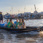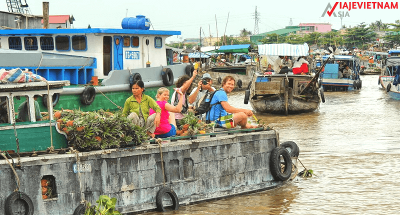 Todos los días, cientos de barcos llenos de frutas, verduras y otros productos de anclaje embarcan a lo largo de las orillas del río, esperando a los comerciantes y los clientes en el mercado flotante Cai Rang. Unos de los lugares más interesantes en el tour del Delta del Mekong en 2 días son los mercados flotantes y la vida fluvial asociada.