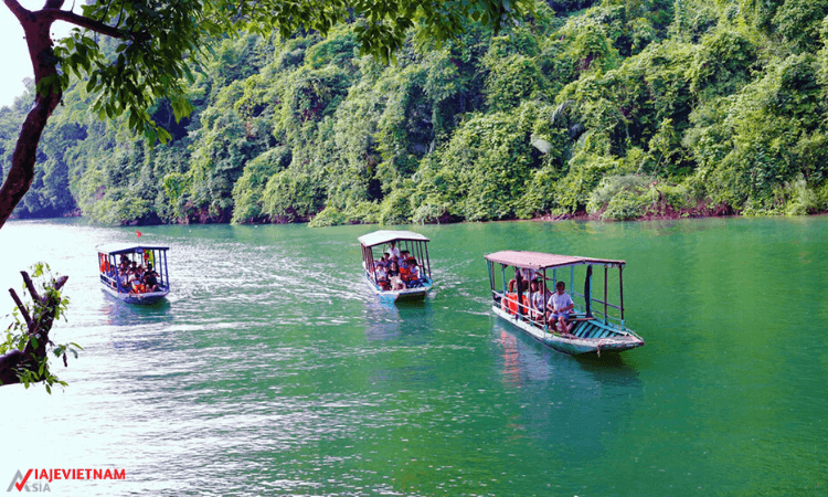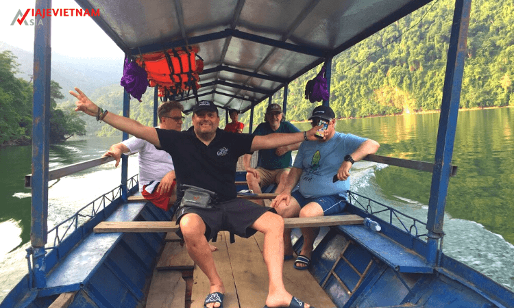 Relajándose navegando en el corazón del lago Ba Be, el lago de agua dulce más grande de Vietnam en general y en norte de Vietnam en particular, se sentirá realmente energético. En el camino, visite la cueva Puong, la cueva más grande en toda esta vasta área (50 metros de altura y unos 300 metros de largo). Continuando en el lago, veremos la cascada Dau Dang formada por el río Nang, consistiendo en una serie de rápidos rocosos de aproximadamente un kilómetro de largo. A continuación, admire el legendario islote de viuda, ubicado en el sur del parque. Según la leyenda local, este islote fue el hogar de una vieja viuda que escapó del diluvio gracias a la intervención divina. Hay varios kayaks disponibles a bordo para ayudarle a explorar más cerca a los escondidos rincones.