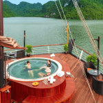 Sobre las 17h volveremos al Orchid Cruise para seguir explorando la bahía gracias al buen clima de Vietnam en esta zona donde el ambiente es cálido y nos invita a salir a la cubierta a disfrutar de las tumbonas o de las sillas. Orchid Cruise irá por las zonas menos visitas, pero con gente ya que algunos de los habitantes de la zona viven encima del agua en casas flotantes creando auténticos barrios donde podrán acercarse y ver cómo es la vida local gracias a nuestros viajes culturales organizados. El agua se vuelve color esmeralda y el agua en calma nos invita a darnos un chapuzón donde podrán refrescarse si el tiempo acompaña y disfrutar de algunas de las playas vírgenes que nos ofrece Halong en la zona de Tra Bau – Lan Ha.