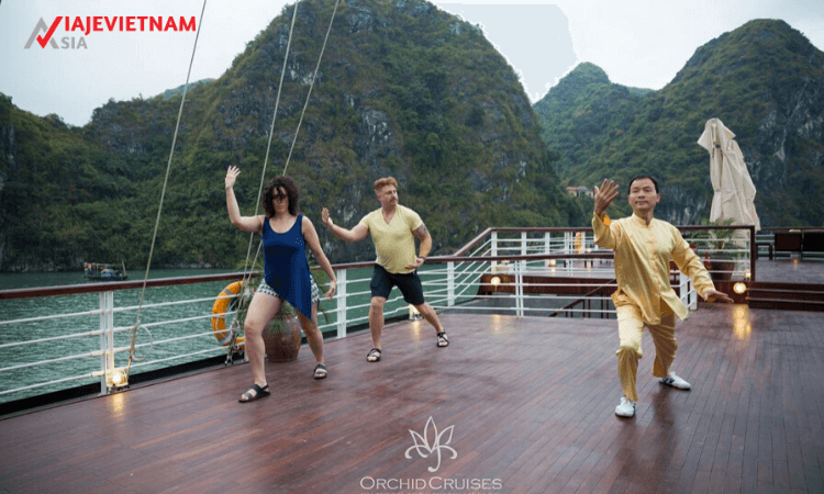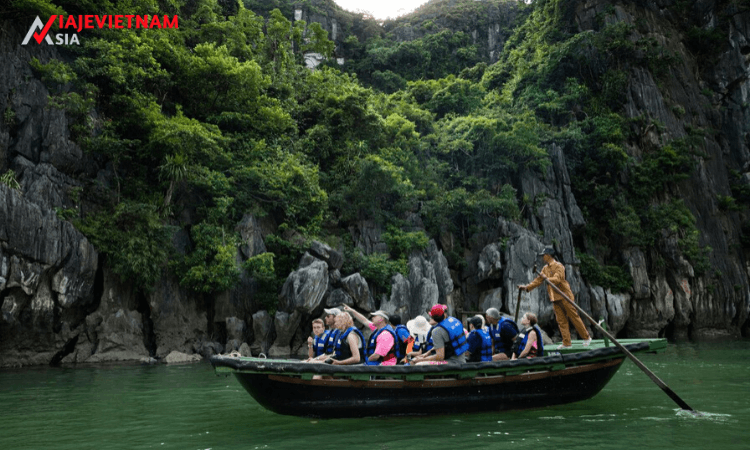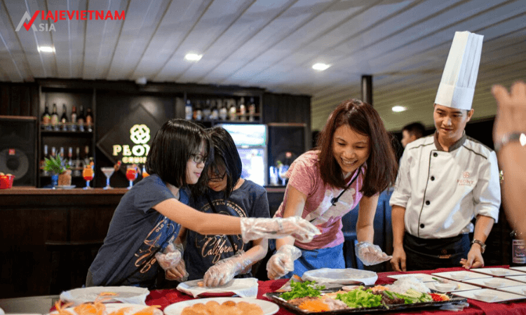Todas estas montañas de la ruta Thoi Quyt y Coc Ngoi de Gia Luan pertenecen al parque nacional de Cat Ba pudiendo explorarlo ustedes mismos montados en su kayak y atravesar todos aquellos lugares que no pueden pasar Peony Cruise 2 días 1 noche como la zona de Ao Ech en la que esconde playas vírgenes y agua verde esmeralda para que todo aquel que quiera, siempre que acompañe el tiempo en Vietnam, darse un chapuzón sin turistas. Esta zona esconde en algunos lugares auténticos barrios flotantes de las casas de los nativos, Tra Bau es una de las zonas de Halong donde más tranquilidad se vive. Tranquilidad y paz o por el contrario vivir una experiencia de la gastronomía vietnamita con una clase de nuestro chef donde aprenderá los secretos asiáticos y preparar en su casa platos únicos.