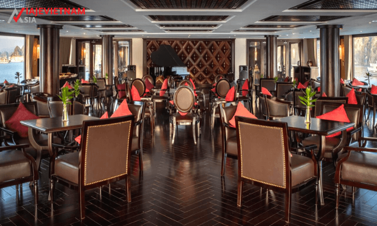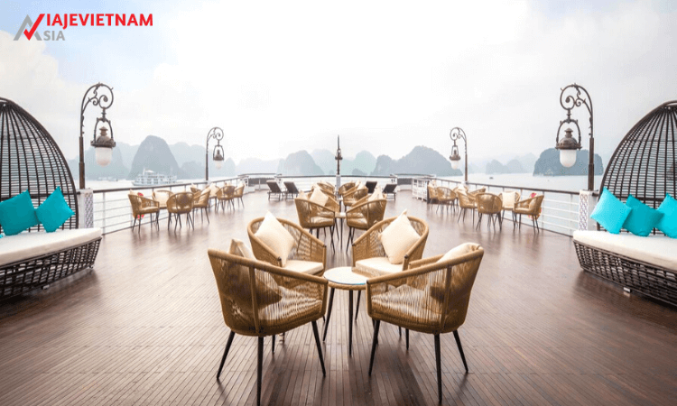 06.30 Después de los ejercicios de Tai Chi para dar la bienvenida al nuevo día en la terraza al amanecer, toma un desayuno ligero con café y pastel en Le Piano Lounge. Luego, puede relajarse con un tratamiento especial de spa o contemplar los paisajes de Halong por última vez al descansar en la terraza.