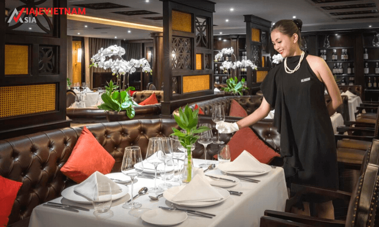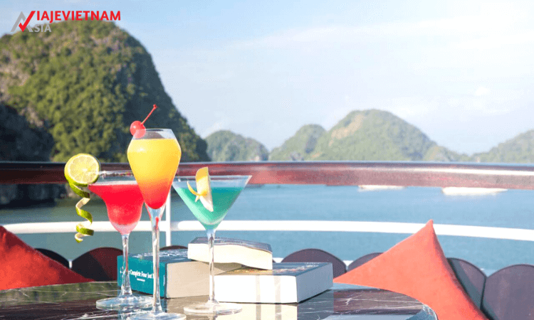 12.30 Se embarca al President Cruise Halong. Después de completar los procedimientos de check-in, visita el restaurante para disfrutar de una bebida de bienvenida y escucha al gerente del crucero presentarle el itinerario del viaje en el President Cruises Halong 3 días 2 noches, así como las regulaciones de seguridad a bordo.