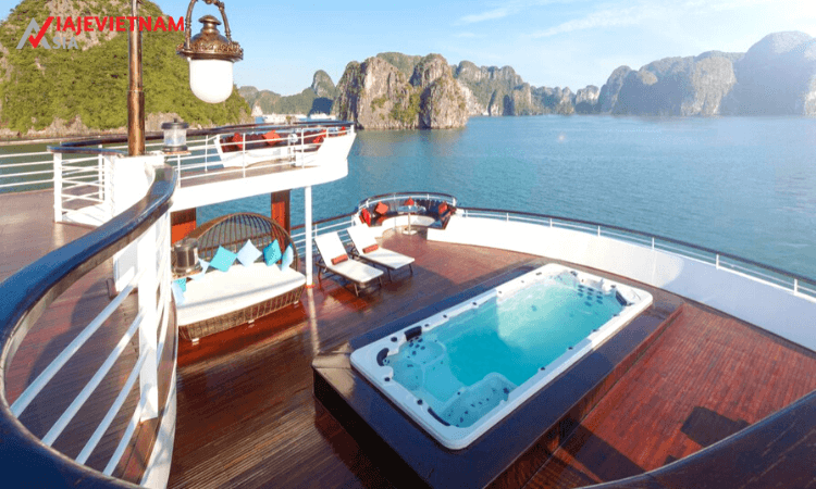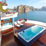 14.00 Después del almuerzo, relájese y admire las encantadoras vistas panorámicas de la bahía de Halong con las cuevas de miles de año. También, puede experimentar un tratamiento especial en el Spa * con un equipo de terapeutas excelentes * (Gastos de spa excluidos del precio de tour).