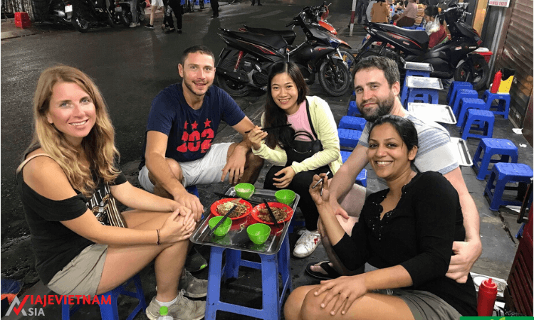 Tras ver este punto de la ciudad será momento de saciar el hambre y comenzar el tan deseado momento de degustar la comida callejera de Hanoi. Al pasar por los puestos de comida podrán ir degustando cada uno de sus sabores, olores y texturas. Contará con entrantes, plato principal y postre, tampoco dejará de degustar la bebida que todo el mundo busca: el café con huevo, que sin duda los amantes del café van a encontrar un nuevo sabor a la vez que prueban algo típico. Tras toda la degustación llegará otro momento que van a disfrutar, sentarse y disfrutar de las calles hanoienses mientras se toman la cerveza típica del país, con unos vasos de bia hoi, la cerveza de barril favorita tanto por extranjeros como por vietnamitas.
