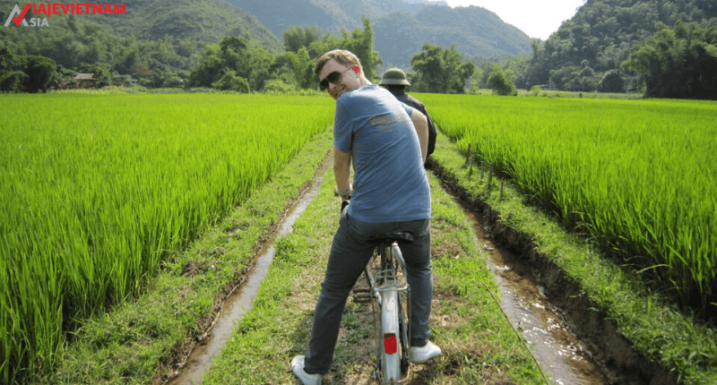 Comience a andar en bicicleta por un sendero de pista única a través del espeso bosque tropical y a lo largo del arroyo, ladera para experimentar la naturaleza y la vida tranquila de la aldea. Después de más de una hora dentro del bosque, llegaremos al pueblo de Hieu. Tendremos el almuerzo en una casa de huéspedes ecológica. Después del almuerzo, montaremos nuestra bicicleta para continuar la travesía y explorar el magnífico paisaje en la Reserva Natural Pu Luong. Nos encontraremos con el vehículo de apoyo y saldremos de regreso a Hanoi.