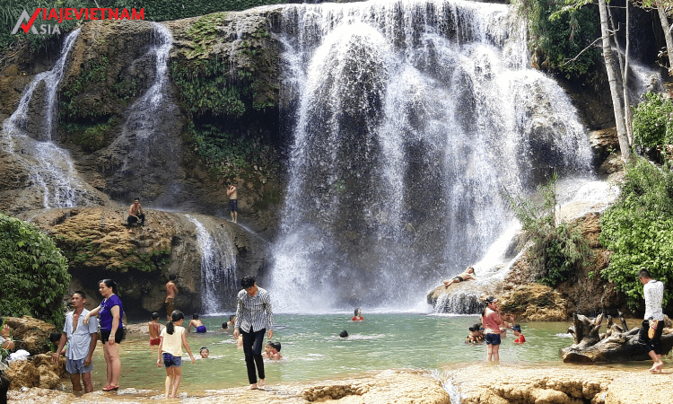 Se levantará temprano para disfrutar del aire fresco y la naturaleza impresionante en el área de la línea fronteriza. Podrá caminar hasta la caída de agua para ver paisajes increíbles, además de montar en una balsa de bambú para admirar la magnífica caída de agua. Regresará al resort para tomar el desayuno. Después del abundante desayuno, nuestro autobús nos llevará a visitar las cuevas Nguom Ngao y Bac Po, por donde el presidente Ho Chi Minh llegó a Vietnam a través de China después de 30 años de vivir y trabajar en el extranjero. Primero se quedó con una familia local y luego se mudó a la cueva para vivir y trabajó durante más de un año. Esta visita posibilitará que usted entienda mejor la vida de una figura emblemática como la de Ho Chi Minh, recuerdo que luego atesorará de sus viajes a Vietnam.