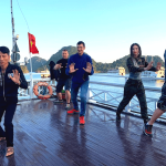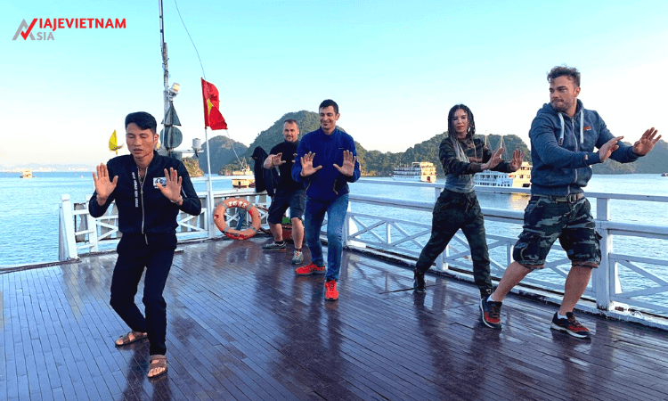 Comience el nuevo día con mucha energía positiva con una sesión de Tai Chi en la terraza superior y vista espectacular del amanecer en la bahía de Ha Long. Hay que afirmar que bahía de Halong será uno de los mejores destinos para disfrutar del amanecer del norte de Vietnam. Después de un desayuno ligero, transfiérele a un bote del día y comienza a explorar profundamente las áreas remotas, más escondidas en la bahía. Puede navegar en kayak, nadar, visitar las cuevas, montar en la bici (estas actividades se organizarán de manera diferente según cada itinerario). El almuerzo se servirá en el bote del día.