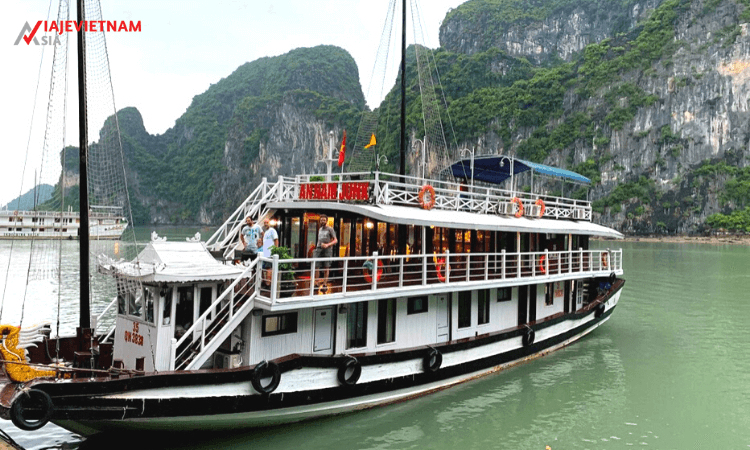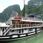 A su llegada, el amable personal del barco le recibe, organiza habitación para usted. Desde ahora, confortablemente disfrutará de la espectacular bahía de Ha Long mientras se sirve un delicioso almuerzo local de mariscos. Admirará miles de islote y cueva de piedra caliza emergiendo del agua clara y esmeralda.
