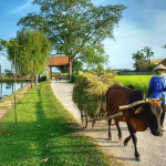 Para por Moon Garden, donde pasará la noche. Es una casa muy encantadora ubicada en un hermoso jardín con una amplia vista que se abre a exuberantes campos de arroz y la montaña Ba Vi. Realizará muchas actividades en esta casa y la primera será una clase de cocina y el almuerzo. Después del almuerzo, relájese con un cómodo masaje de manos. Luego, monte en bicicleta para explorar los pueblos agrícolas alrededores: Ky Son, Tam Son, Van Minh y Cham. Puede detenerse en cualquier casa que desee en el camino para tomar una taza de té y conversar con los lugareños para aprender sobre su vida cotidiana. Su experiencia se enriquecerá al participarse en las actividades agrícolas con los agricultores locales como arar, cultivar, trasplantar plantones o cosechar arroz (o mandioca, maíz, batatas, etc.) dependiendo de cada temporada.