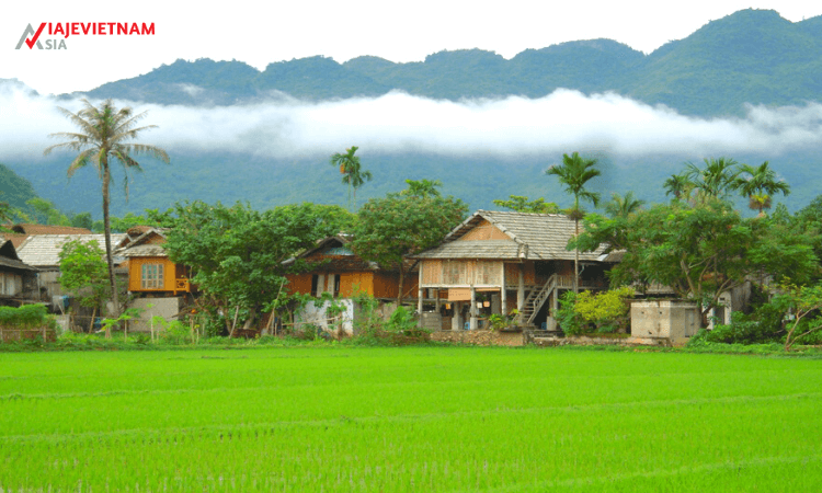 Mai Chau es una atracción muy adecuada para realizar una aventura ligera en el norte de Vietnam. En el camino, tendrá la oportunidad de admirar la impresionante vista panorámica del valle de Mai Chau rodeado de exuberantes campos de arroz, majestuosas montañas altas, intercaladas con simples casas sobre pilotes. Esta región es donde se residencia una gran cantidad de minorías étnicas, incluidas la mayoría de Thai, H’Mong y Muong.
