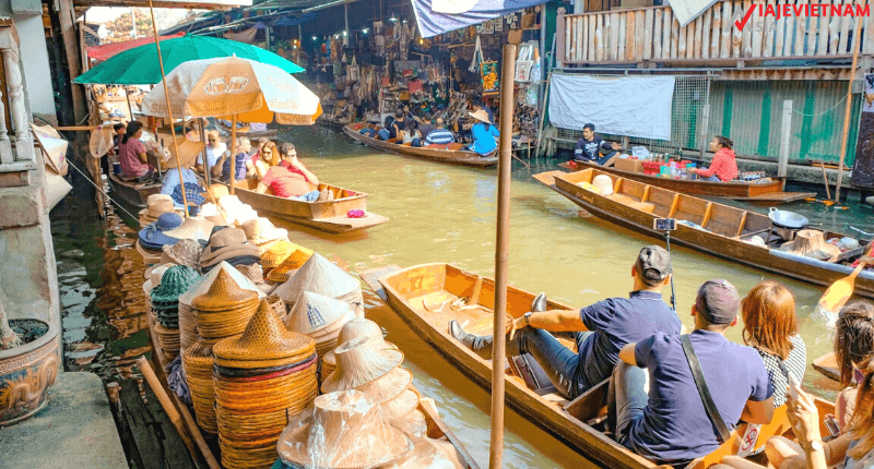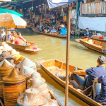 Desayunaremos bien temprano en la mañana en el hotel. Luego, vamos al sur de Bangkok, a la provincia de Samut Songhkhram en el delta del río Mekong. En primer lugar vamos a visitar un mercado único, para ello, necesitamos tomar el tren que nos lleva hasta allí. Más tarde, continuaremos visitando el fascinante mercado flotante Damnoen Saduak a 110 km de la provincia de Bangkok, Ratchaburi. Al llegar, visitaremos la fábrica local de azúcar.