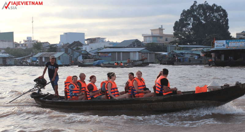 Temprano, tomaremos el barco para pasear por el mercado flotante de Cai Rang, el más grande y animado mercado flotante del Delta del Mekong, en ciudad Ho Chi Minh. El marco es espléndido: cientos de pequeños botes a motor llenos de arroz, frutas y productos artesanales que se reúnen para intercambiar y vender productos.
