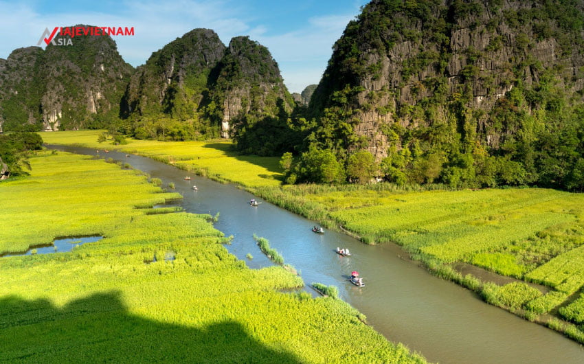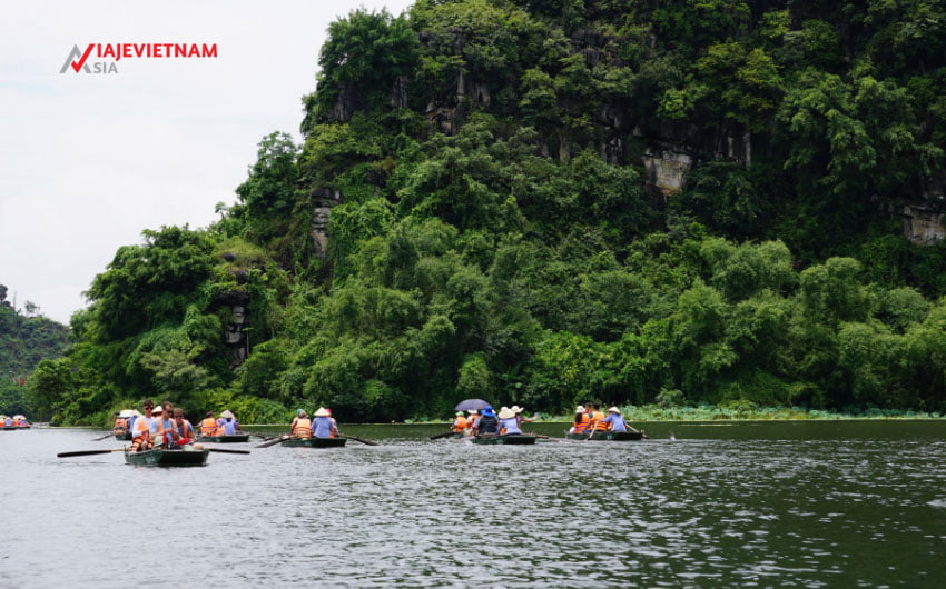 Por la tarde, para visitar Hoa Lu– la antigua capital de Daicoviet (antiguo nombre de Vietnam), durante 41 años desde el año 968 cuando el emperador Dinh Bo Linh subió al trono hasta el año 1009. Este lugar fue elegido como la capital debido a su proximidad con China y también a la protección natural que ofrecían el entorno y el bonito paisaje. En el año 1010 el rey Ly Thai To traslado la capital a Thang Long, actualmente al llegar a Hoa Lu, solo se conservan dos templos construidos como homenaje a los reyes Dinh y Le del antiguo palacio fundacional.