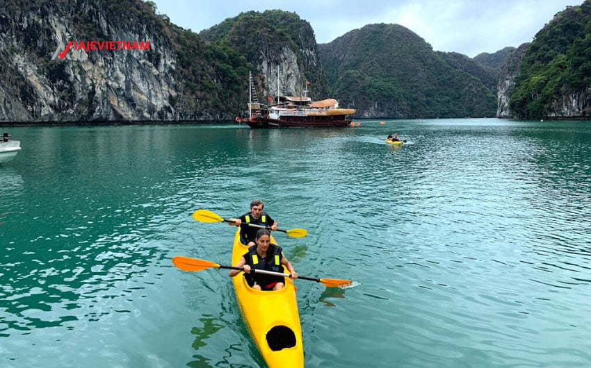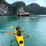 Tras el desayuno, el shuttle bus compartido del crucero nos recoge en el hotel para ir al muelle en Halong donde embarcaremos en un barco. Disfrutaremos un cóctel de bienvenida, luego degustaremos un delicioso almuerzo. La tarde se dedica para disfrutar de los paisajes magníficos de Halong Bay y Lan Ha Bay. Luego tiempo libre a practicar kayaking en el Mar (pertenece al Océano Pacifico) o disfruta del sol en la cubierta del barco. Una tranquila noche a bordo de nuestro cómodo junco en cabinas privadas. Alojamiento en el barco.