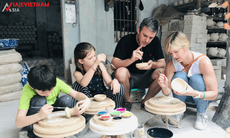Después de caminar mucho, ahora es el momento de sentarse y probar algunos de los platos más deliciosos de la comida en el norte de Vietnam. El almuerzo se sirve en un restaurante local. La tarde de este día será un momento de goce para su familia, pues nos dirigimos a la aldea de cerámica de Bat Trang al norte de Vietnam. Aquí, toda la familia se unirá a interesantes talleres de cerámica. Habrá un poco de suciedad, pero a cambio de muchos momentos divertidos e inolvidables para su familia. El regreso a Hanoi será al final de la tarde.