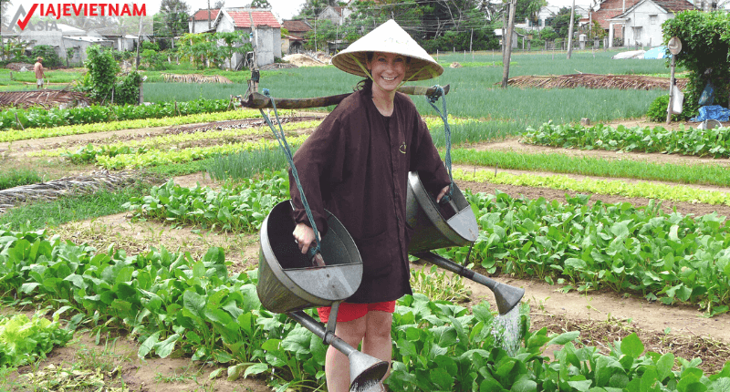 Al llegar a la aldea de Tra Que, usted tendrá el chance de experimentar las actividades agrícolas si así lo desea, como cultivar y regar las verduras o cosecharlas. Además, podrá atender una pequeña clase de cocina para aprender la manera de cocinar la comida tradicional de esta aldea.