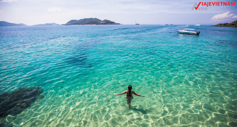 La bahía de Nha Trang es ampliamente considerada como una de las bahías más bellas del mundo. Una de las actividades principales que no puede faltar en esta visita a Nha Trang es bañarse en las cálidas aguas de la playa y aprovechar para tomar el sol.