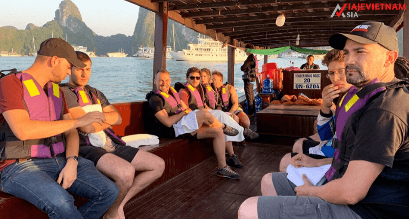 Llegaremos a la cueva Luon y la visitaremos en barco de remo o kayac si las condiciones climatológicas lo permiten. Además, visitaremos el pueblo flotante de Cua Van. Más tarde, disfrutaremos de la cena a bordo y tendremos tiempo libre el resto de la noche.