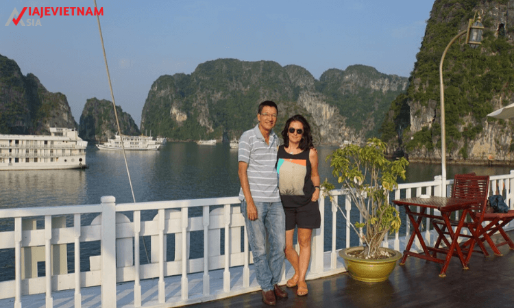 Comenzará su día con ejercicio de Tai Chi en la terraza. Disfrutará de una vista matutina de paisajes marinos con una taza de té o café y desayunará mientras navega hacia la cueva Thien Canh Son. La misma es de tamaño medio y la menos visitada en la bahía de Bai Tu Long.