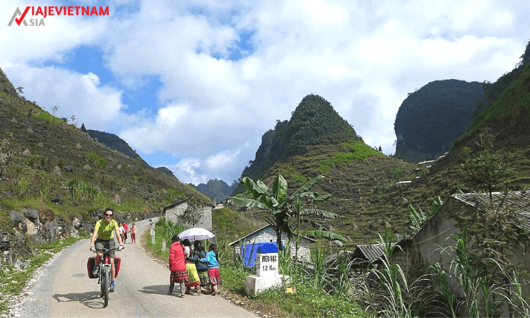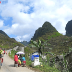 Recorrer Vietnam en bicicleta por el “Camino de la Felicidad” (Happiness Road) es lo más destacado de nuestro viaje. A lo largo del Happiness Road, la autopista 4C, también conocida como Happiness Road, es la carretera principal. Tiene 200 km de longitud, va desde la ciudad de Ha Giang y pasa por los distritos rocosos de Quang Ba, Yen Minh, Dong Van y Meo Vac con cientos de curvas cerradas y estiradas que se aferran a los bordes de los precipicios. En construcción desde 1959 hasta 1965, el camino se construyó oficialmente a través del sudor y las lágrimas de la mayoría de los voluntarios jóvenes, tanto locales como de todo el país.