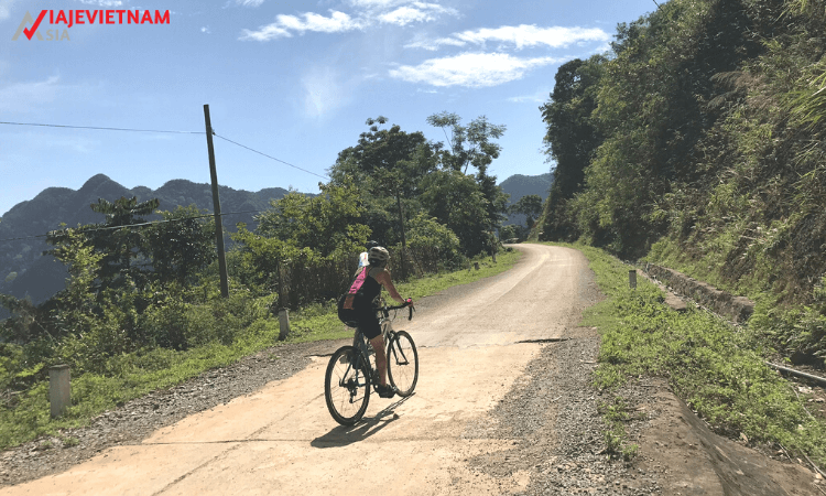 El quinto día será otro emocionante día de ciclismo en nuestra ruta norte Vietnam por la provincia de las montañas rocosas de Ha Giang. Nuestro viaje se dividirá en dos partes y se distinguirá en cada parte. Haremos un ciclo en la ruta escénica con algunos pases suaves en la mañana. Si bien la ruta desafiante y sinuosa Meo Vac nos espera en la tarde para recorrer Vietnam en bicicleta a lo largo del río Gam hasta el puente Ly Bon, será un paso increíble y una ruta sinuosa que conduce a la ciudad de la colina Meo Vac.