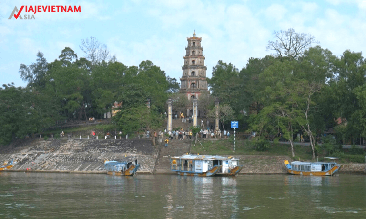 La visita de Viajes a Vietnam y Camboya no acaba aquí ya que pegada a las aguas del río perfume tocará la visita de la pagoda del amor, Thien Mu, donde la leyenda que esconde sobre las parejas les dejará sin palabras.