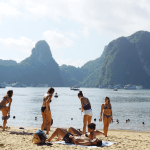 Desde el interior del barco se ve diferente, es por ello que para vivir algo nuevo pueden bañarse en algunas de las playas que verán escondidas durante su recorrido a través de los cientos de montañas de roca caliza.